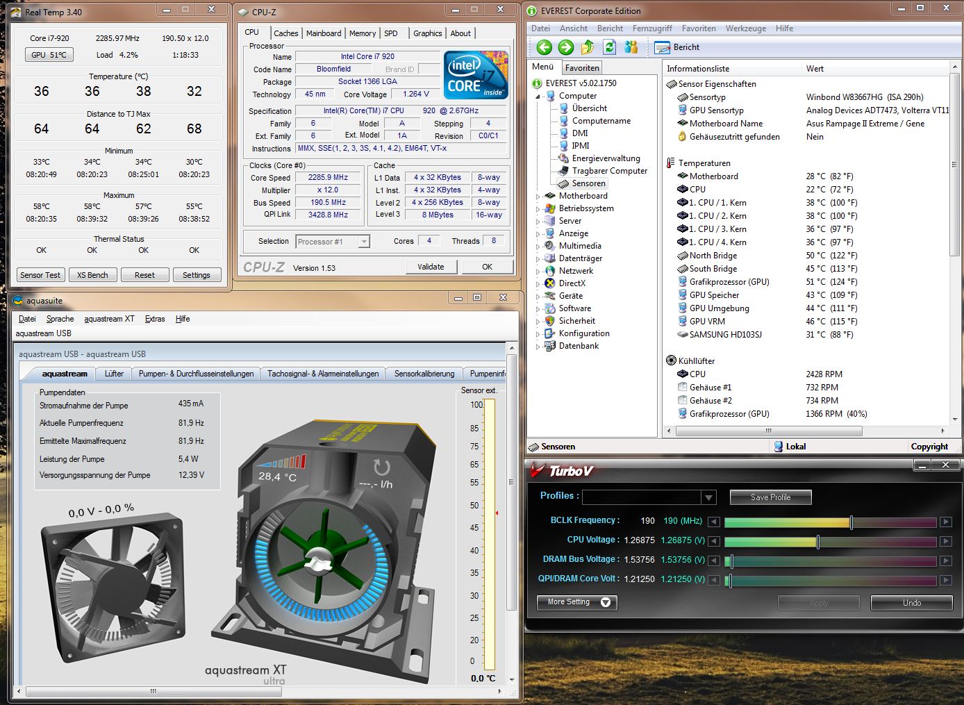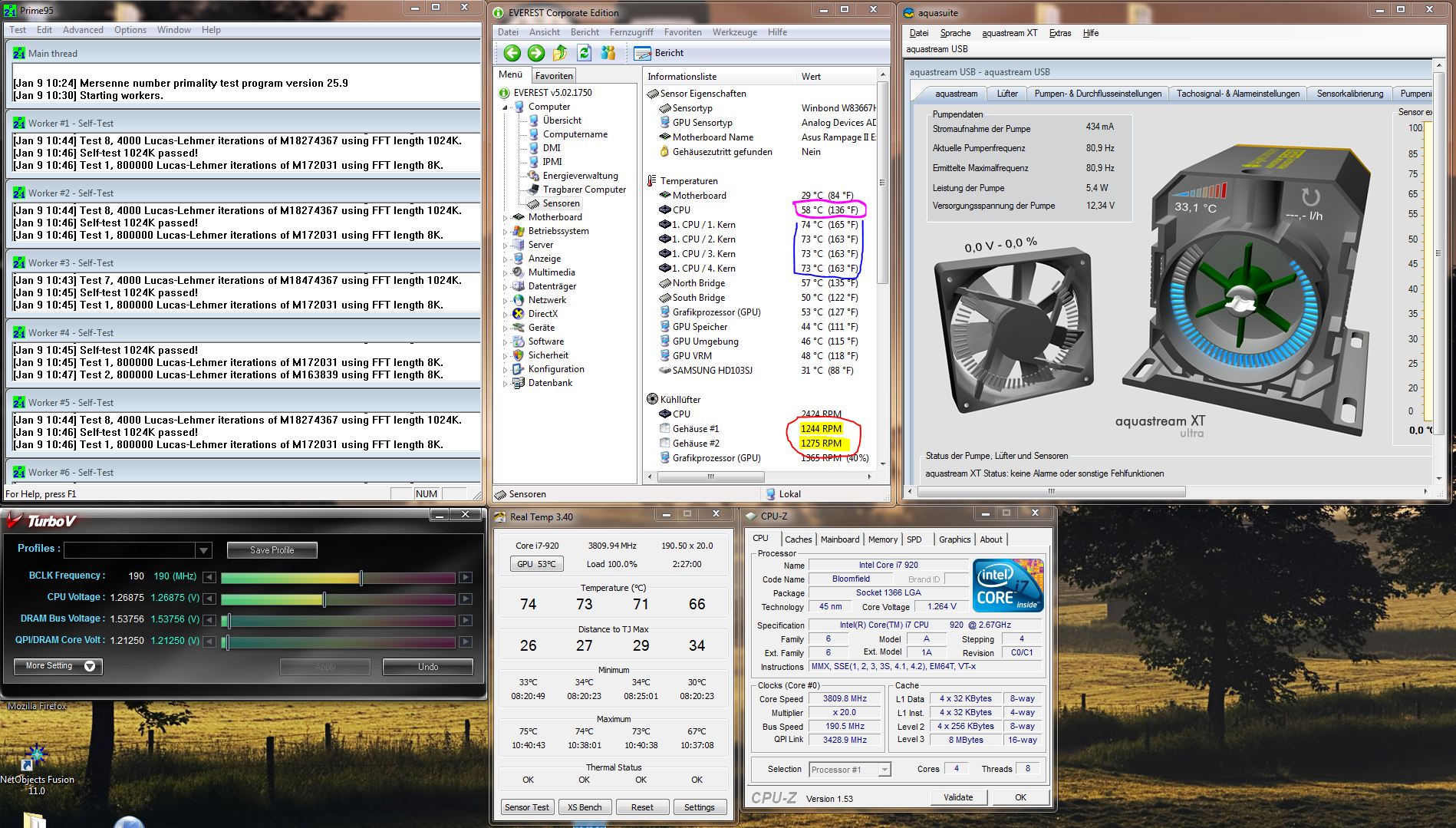 Das gekühlte Sys war ein Phenom II 940 @ 3,6GHz, 1,4V + GTX 260 OC.