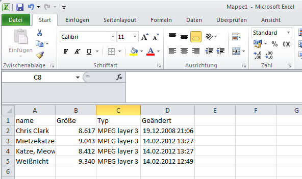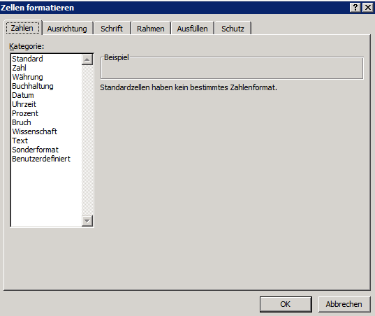 Die Zellen haben kein Format.