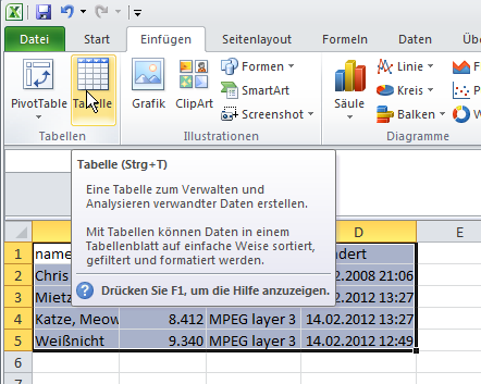 bei 2k7 bzw. 2k10 markieren. -> Einfügen -> Tabelle