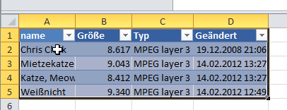 dann um den bereich eine Liste erstellen, bei 2k3 Rechtsklick -> Liste erstellen.