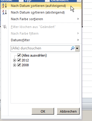 Ahhhh.....verstanden, vielen Dank! :) Ja ich habe auch so Datum Sortiermakros im www gefunden, aber der Code war leider zu alt oder fehlerhaft und lief bei mir nicht. Habe es gerade nochmal so selber durchgeführt und es funktioniert hervorragend.