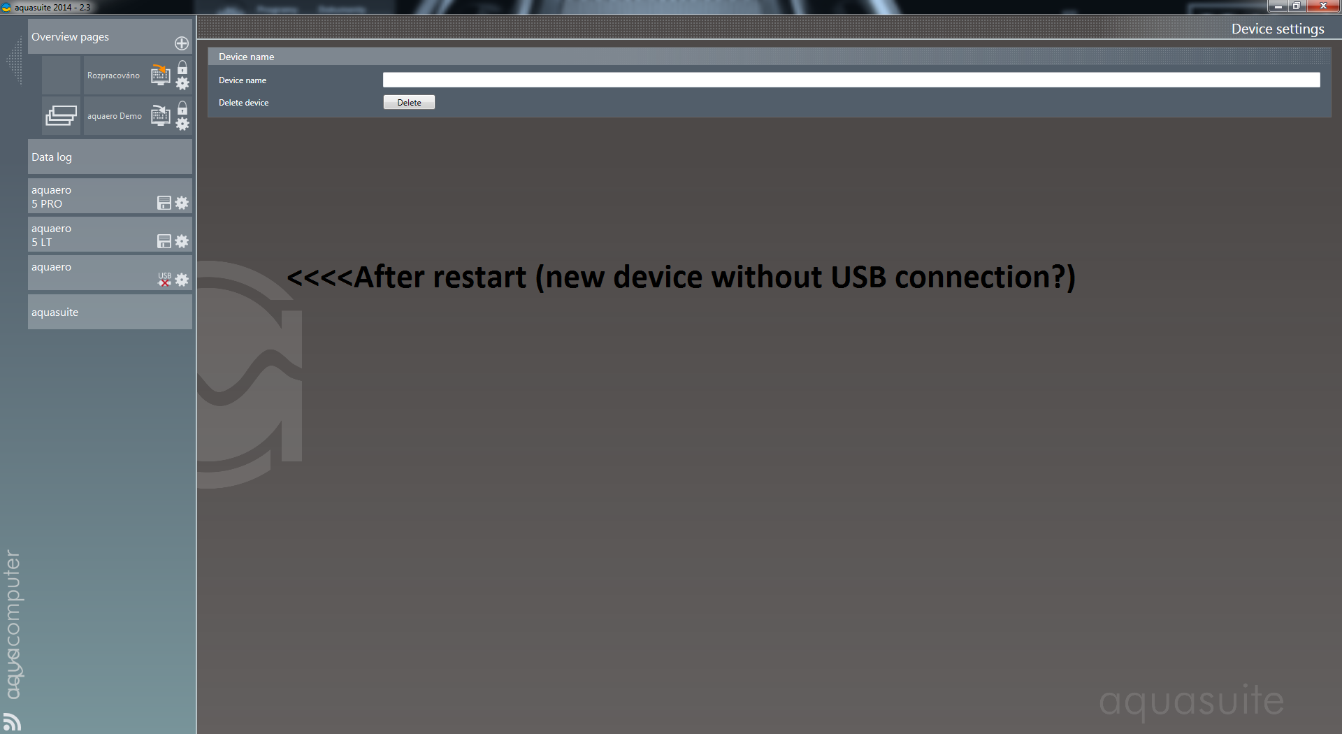 Second, much more serious thing is that sometimes aquasuite mad, the main screen of aquasuite appears that aquaero 5 PRO and LT is disconnected from the USB !!!