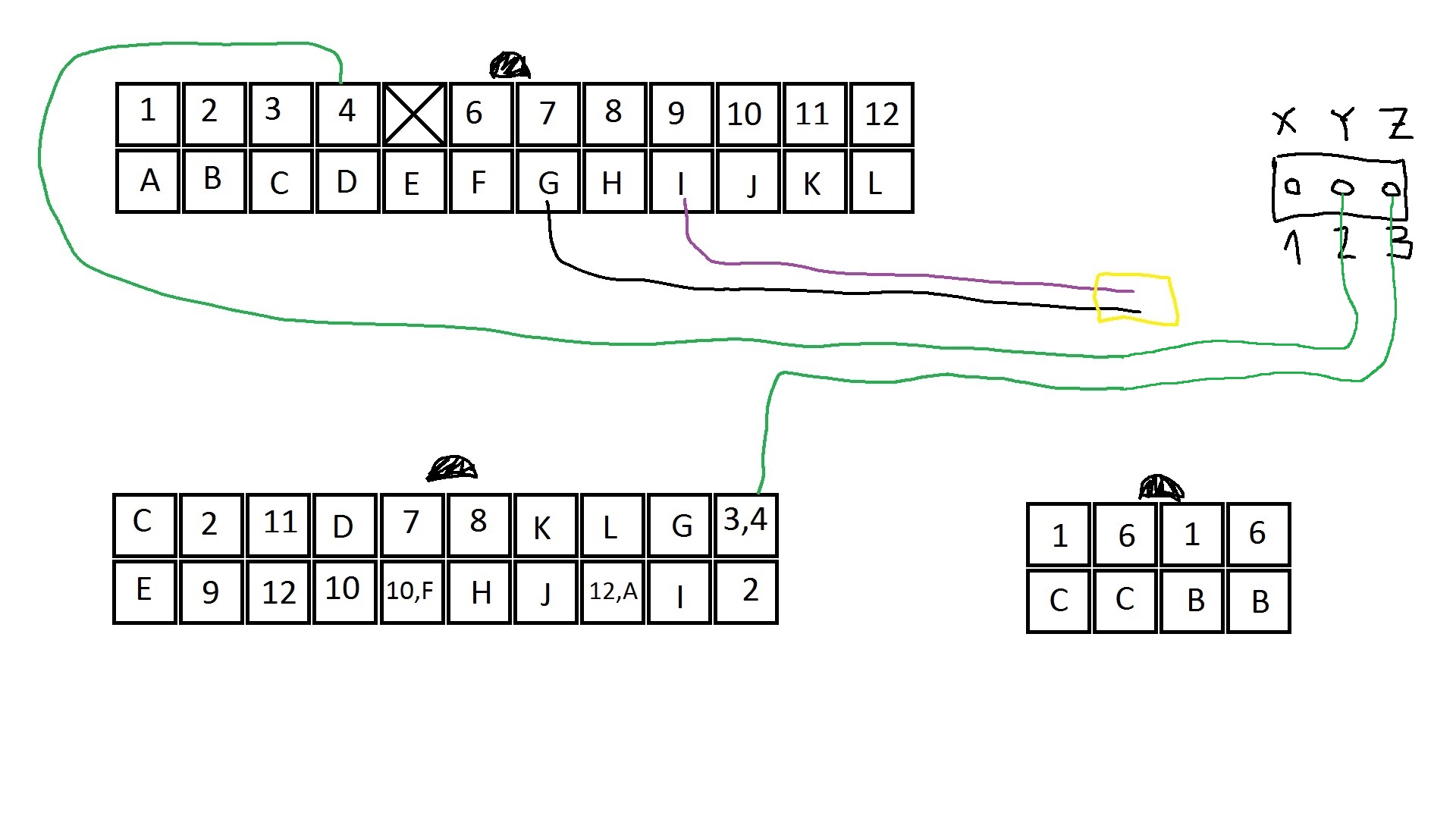 I just need to know which wire goes where in the triple Connector (port X (pin 1 as stated in Manual), Y(pin 2), Z(pin 3) as depicted in the picture), and if there is a purpose to the green wire beeing so long, perhaps it was made this way to make the cable a bit thick to envelope it in a sleeve, i dont know ! Any ways, in the end i dont understand why was the purple and black wire wired to a 2 pin connector if it is not ging to be plugged anywhere ?