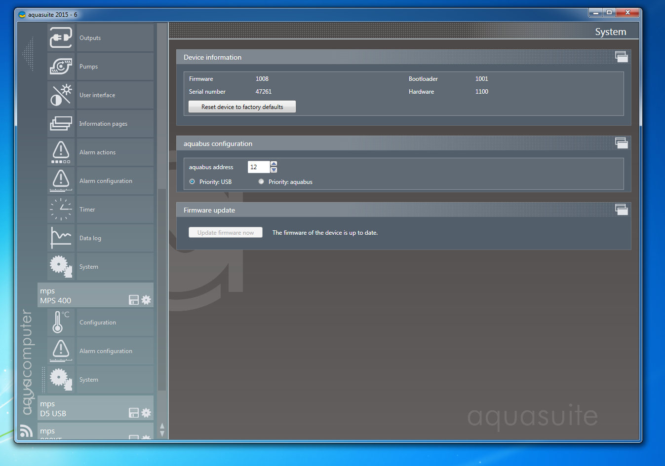 as you can see the Aquaero didn't detect the MPS 400 and shows "Real time clock" ! Is that a Joke !!!???