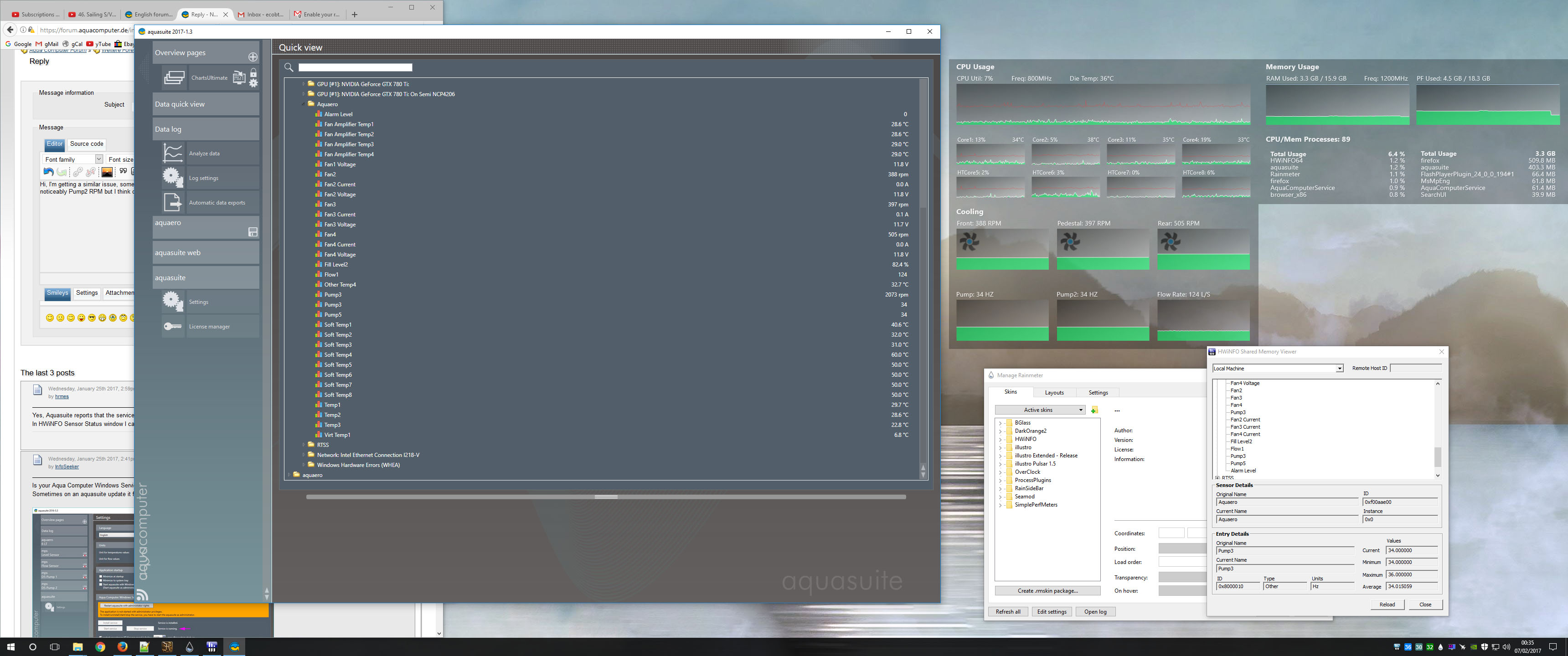Hello Guys,The Aquasuite version is 2017-1.3 and I'm also using Windows 7 64bit. the HW Monitor is on and it does work for the first 10-15 mins of my pc being