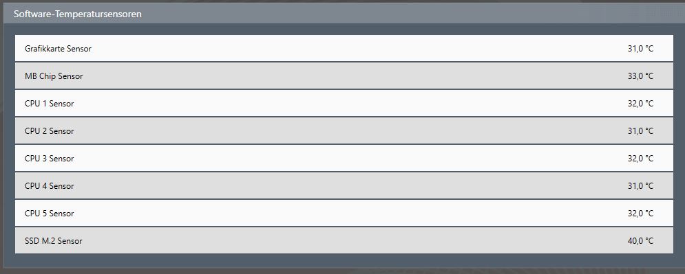 ich habe mir den 6 Kerner von Intel geholt und wollte alle Kerne mit in die Software Temperaturen aufnehmen und die von der GPU, Ram, HDD Mainboard usw. auch angezeigt bekommen. Leider kann ich nur 8 Temperaturen sehen.