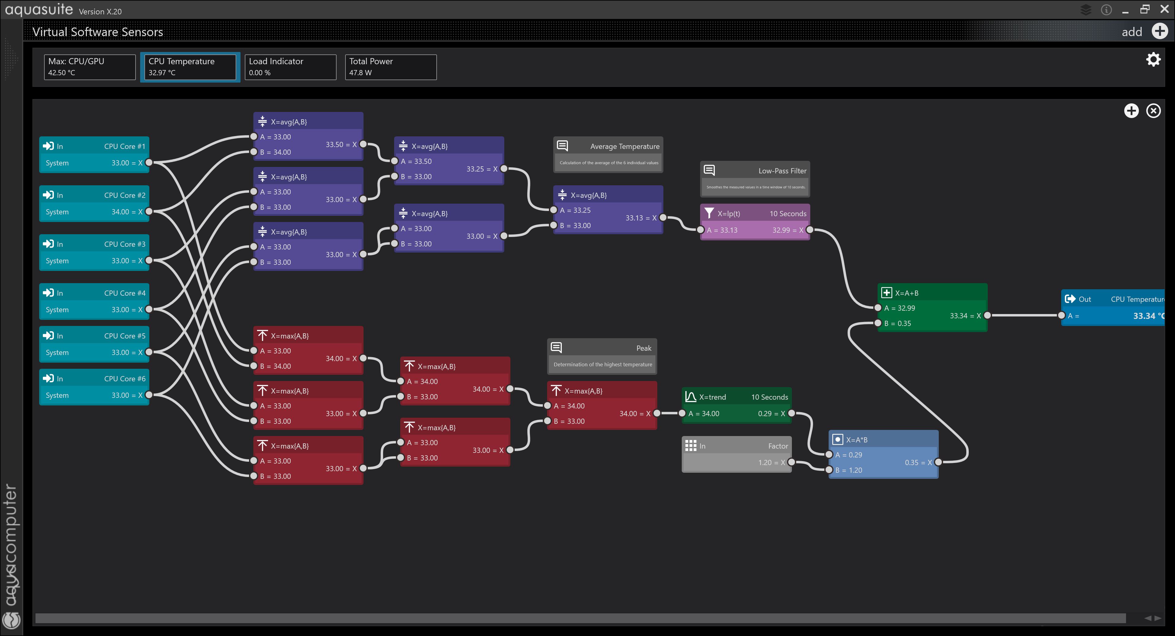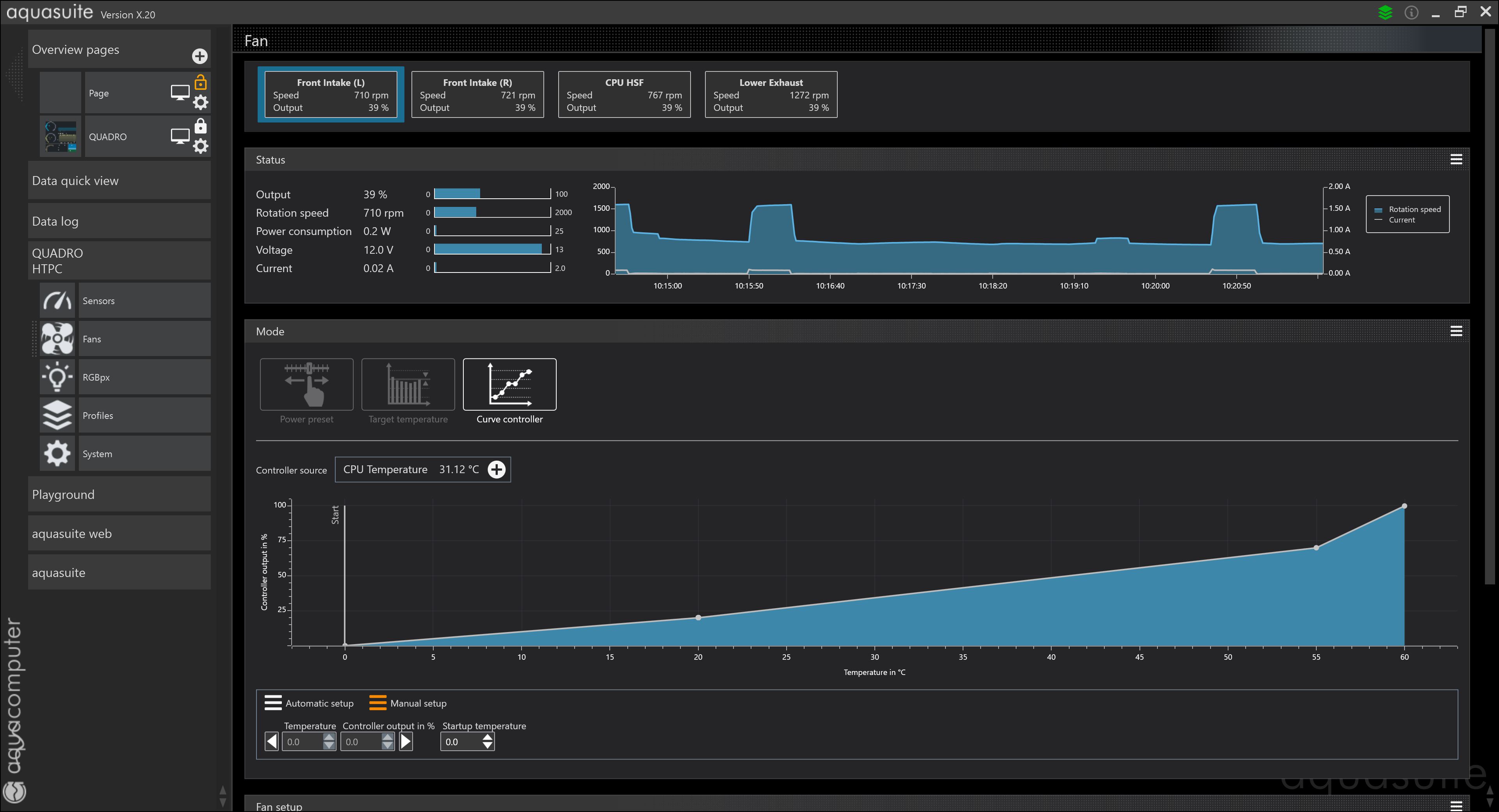 Aquasite X.20 has 4 global profiles set and my Quadro has 4 profiles (Silent/Standard/Performance/Max). I'm using a "Load Indicator", virtual sensor built in the playground to automatically switch my global profiles.