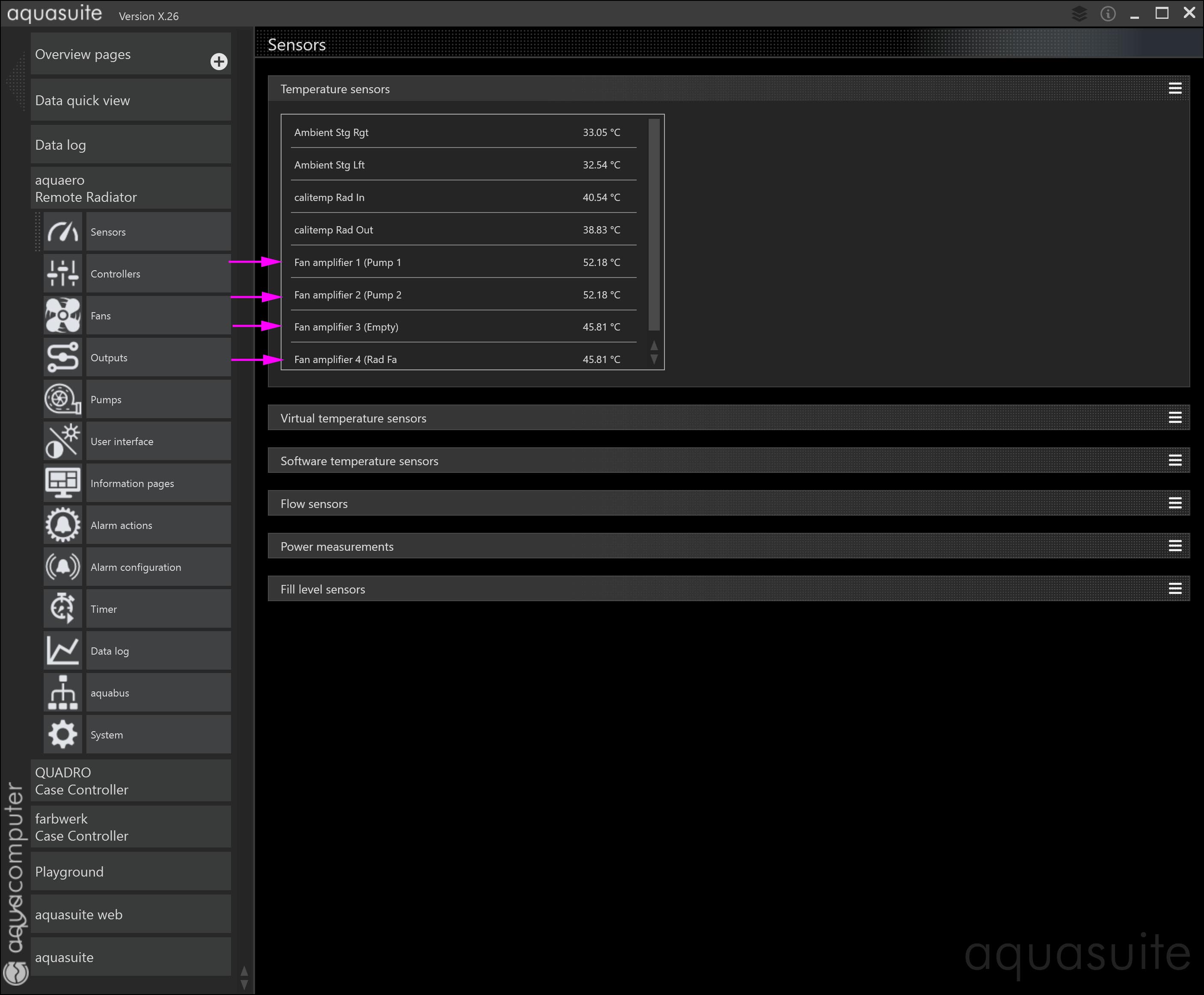 So my AE5 has 2 temperature sensors, fan amplifiers 1 & 2 and 3 & 4.