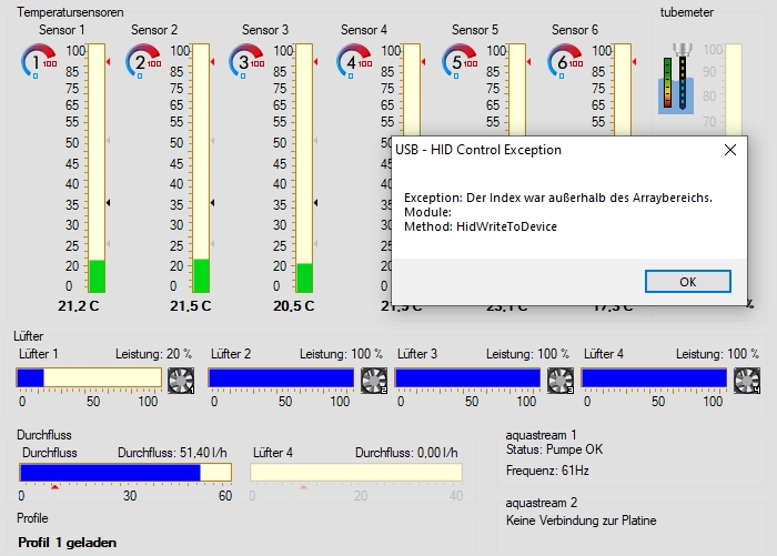 Mein Profil habe ich mir zuvor gesichert. Wenn ich dieses wieder auf das AQ laden möchte drehen die Lüfter kurz runter und dann ist keine Änderung ersichtlich.