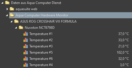 Bei Temperatur 5 kocht das System, währen Temperatur 4 nahe dem Gefrierpunkt ist. Ich dachte erst, dass etwas mit meinem System nicht stimmt. Aber weder die AI Suite 3 von ASUS noch HWinfo oder Aida zeigen mir im entferntesten solche extremwert an. Da scheint auquasuite die Daten falsch abzugreifen.