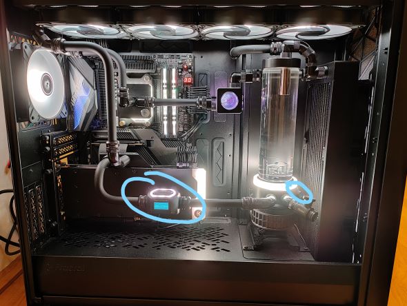 Beim Einbau des Sensors (und ja, die Position ist nicht ideal, aber war so am einfachsten zu realisieren mit der bestehenden Verrohrung), wurde der Loop natürlich abgelassen - Coolant im vorderen Radiator blieb allerdings drin - die übrigen Komponenten waren weitestgehend leer. Davor lief der Kreislauf etwa 3 Monate.Evtl. kann mir hier jemand auf die Sprünge helfen, was meine Highflow Sensor-Werte betrifft.