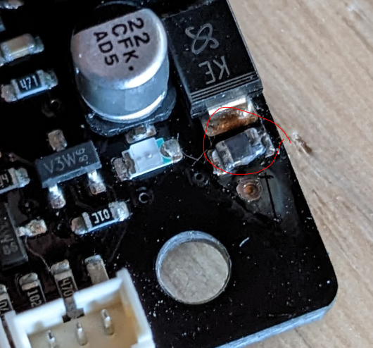 I was wrong - it's a ferrite bead, not a fuse, but in this case it may have acted as a fuse. If this ferrite bead broke down (melted) and opened, stopping the flow of current, then everything past it might still be OK. While I understand completely that Aquacomputer cannot recommend doing this, what have you got to lose? You can solder a short piece of wire across the terminals then apply power to the Quadro. Don't connect any fans or USB or LEDs. If it smokes, then OK it's dead. If it seems ok, try connecting a fan. If that seems OK, try connecting the USB and see if it shows up in Aquasuite. I would have the USB plug into a hub instead of straight into the mobo. The worst that could happen is you damage the Quadro further, and maybe but not likely, a test fan, or the USB hub. My guess is it will either work or just sit there dead. I really doubt anything will catch on fire or be damaged.