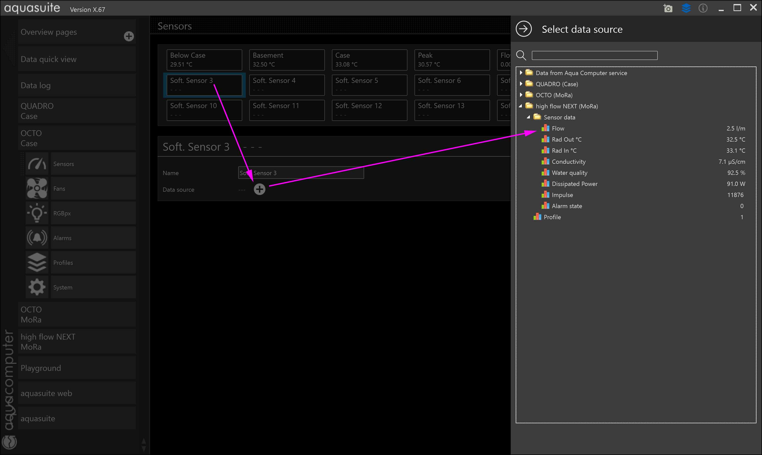 The more common method used, if both have USB connections, is to Import the high flow next flow-data into one of the soft sensors on the octo [import_sensor.jpg]