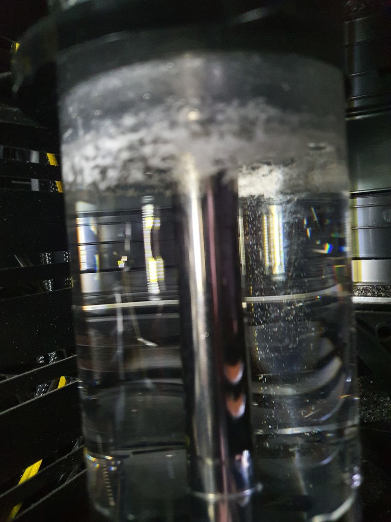 Ich hatte genau das gleiche Problem.Ich habe aus Garantiegründen DP Ultra 5L gekauft und bereue den Kauf mittlerweile.Ich habe noch nie so schlechte Kühlflüssigkeit gehabt, selbst dest. Wasser mit Wussita Lebensmittelfarbe war besser.