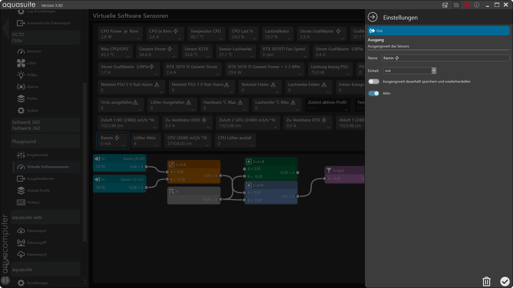 Mir ist beim Einstellen meiner Virtuellen Sensoren aufgefallen dass mein errechneter Wert (I) Lüfter=mA nicht angezeigt werden gleiches gilt für mV