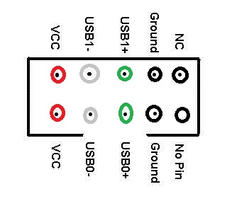 Ja wie gesagt das ist jeweils ein Ganzer USB Port(4Pin´s+1/0). Der fünfte Pin ist Blind und dient nur als Verpolschutz für den Doppelstecker.