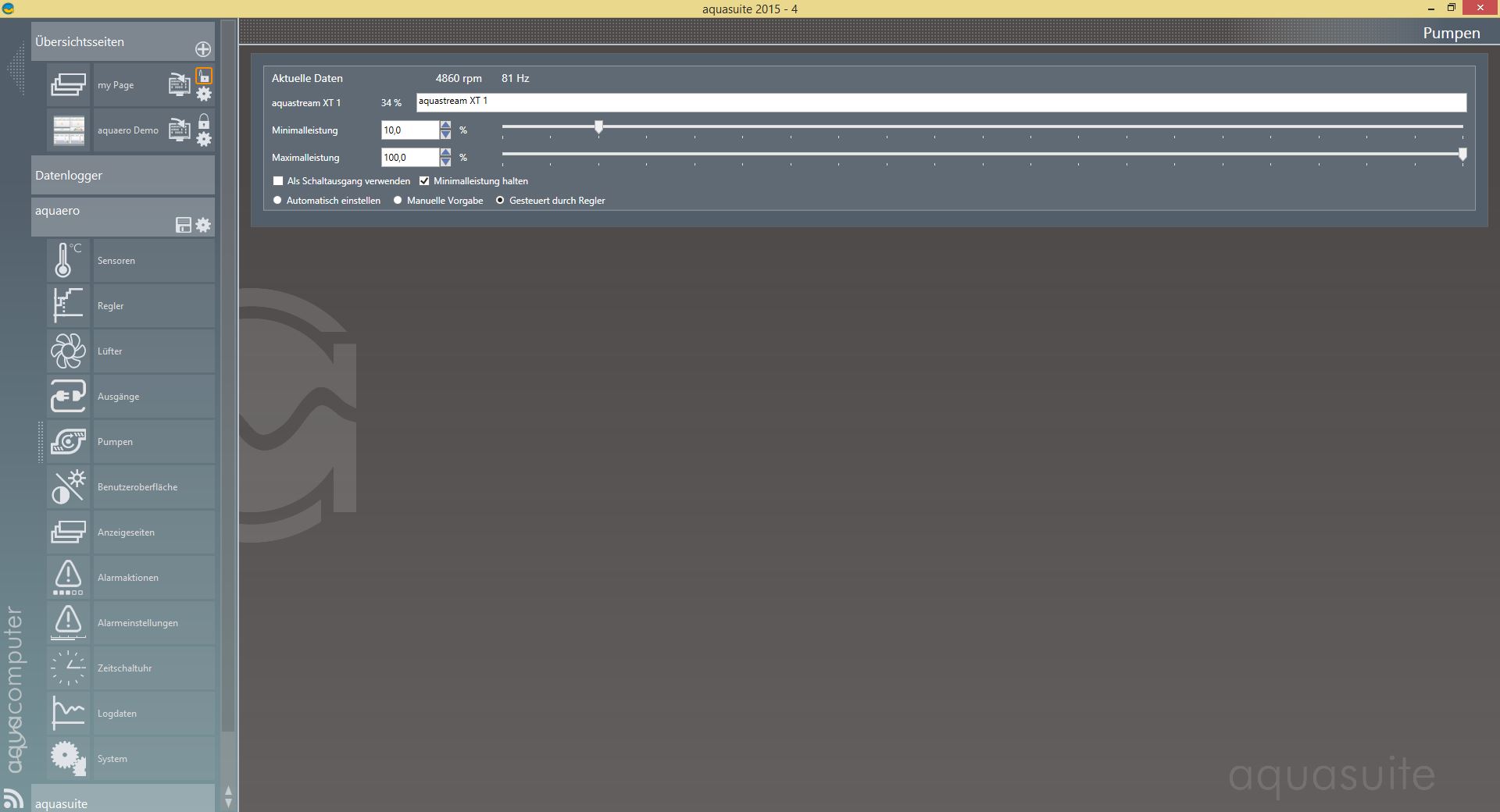 Meine Lüfter konnte ich dank der Aquasuite 2015 mit einem Kurvenregler einstellen oder durch einen Vorgabewert, nur meine Aquastream nimmt keine Kommandos an.