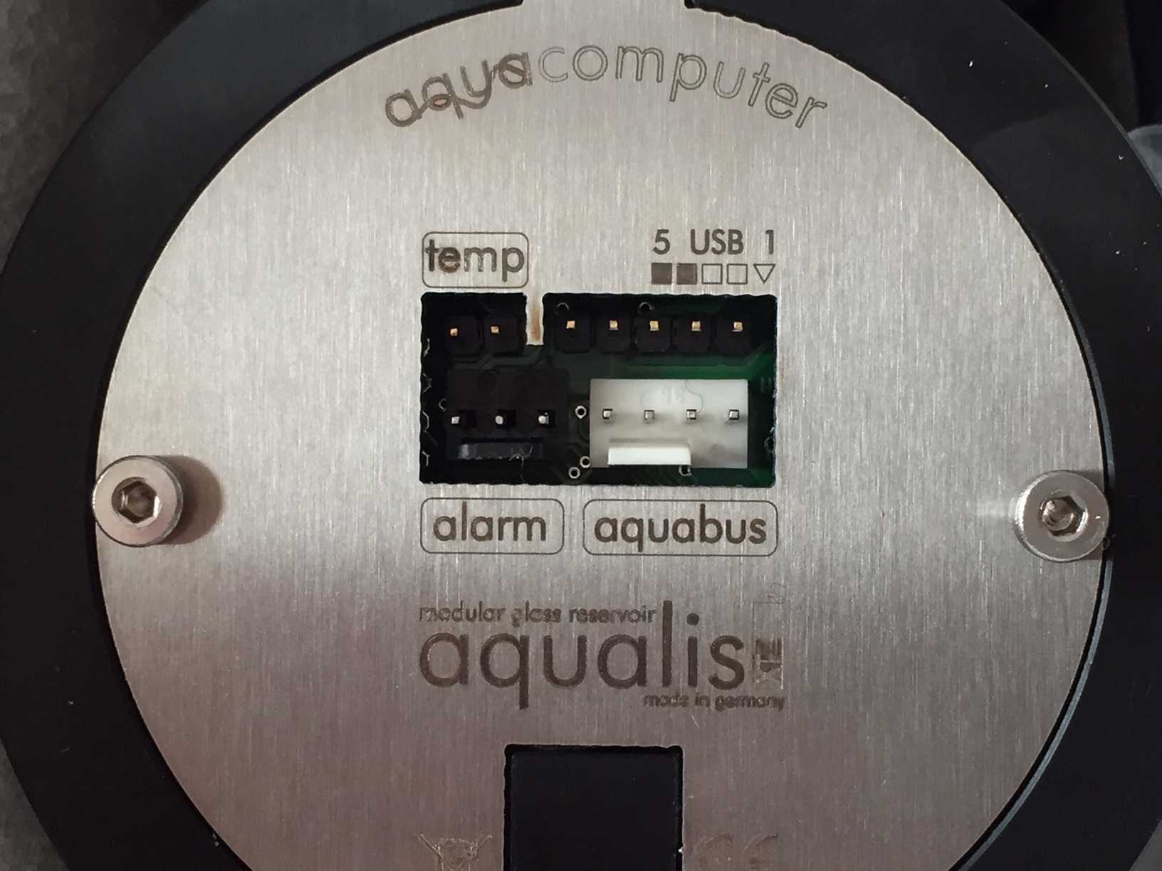 An dem Aqualis befinden sich noch 3 weitere Anschlüsse (siehe Water 4) - Aquabus ( sollte die Steuerung sein... ), Temp ( zum Anschluss eines Temperaturfühlers... )