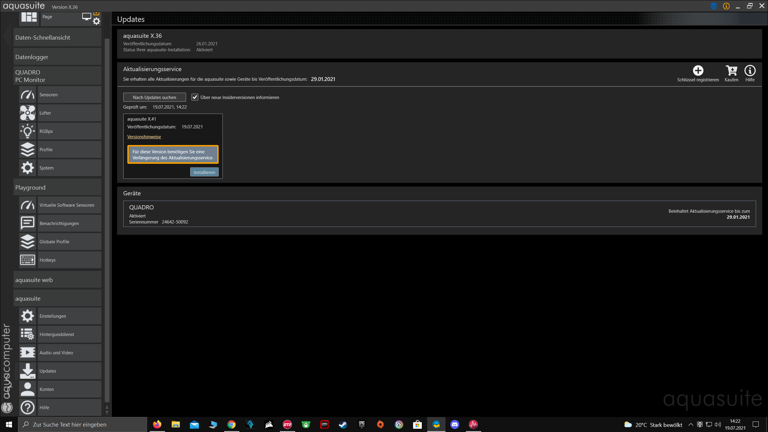 - aqua suite ist neu installiert / Windows 10 neu aufgesetzt