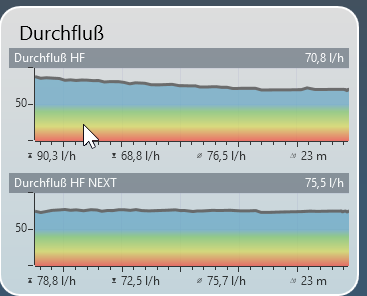 The results you can see in the graph (act values: 70.8l/h for the HF, 75.5l/h for the HFN). Above one is for HF and the below one is for the HFN. Flow ist held at 75l/h. Which one should I trust now more?