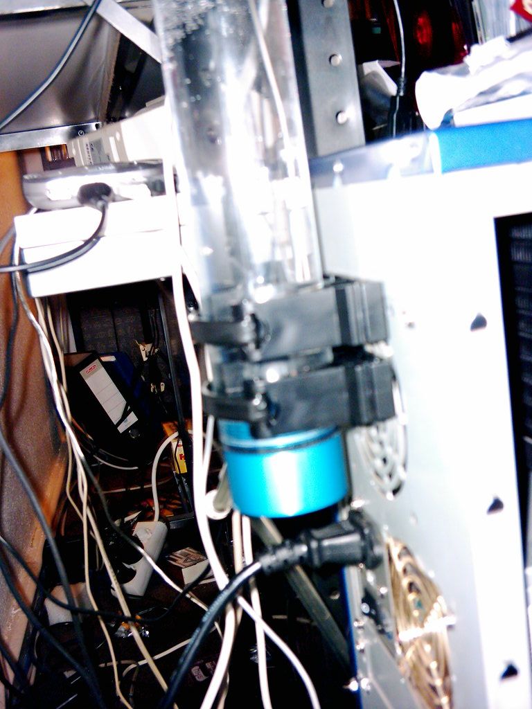 Sodele, ich will auch mal ... Angefangen beim Case, ein Enthoo Elite mit nicht originalem Ausschnitt in der Front um dem 560er Radiator das Atmen zu ermöglichen. Alle Radiatoren werden in Push/Pull betrieben was hinter der Front ohne den Ausschnitt für Probleme gesorgt hätte: Die Lüfter lassen nur einen 2mm Spalt bis zur Frontabdeckung und verdecken damit auch die seitlichen Einlässe. Die Anbringung komplett innen hätte mich noch einmal zusätzlich im Platz eingeschränkt den Kühler der GraKa betreffend. Die geschlitzte Abdeckung ist ein mit 2K-Kleber installiertes Türbelüftungsgitter. Front und Deckel wurden wegen der Bearbeitungsspuren vom ausschneiden und weil sie oben direkt aneinander stoßen anschließend in einem mittleren matten Anthrazit lackiert (MB SLS-Lack), der Fuß und das direkt daran anschließende Seitenteil rechts im Original-Schwarz belassen.