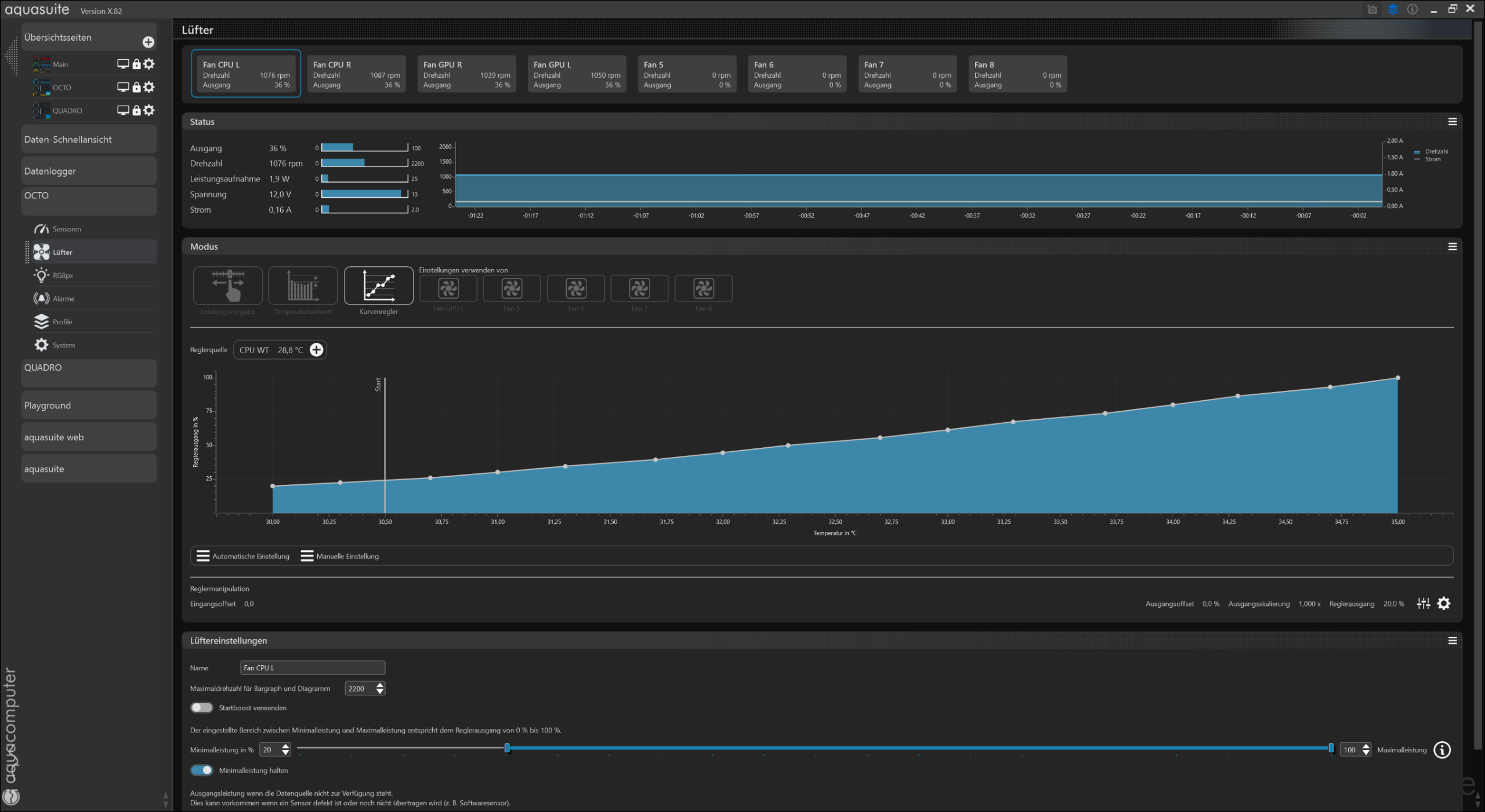 Habe alles nach meinem wünschen eingestellt aber dabei festgestellt obwohl mir für meine Lüfter am Reglerausgang 20% gesagt wird, der Lüfter mir sagt 36%