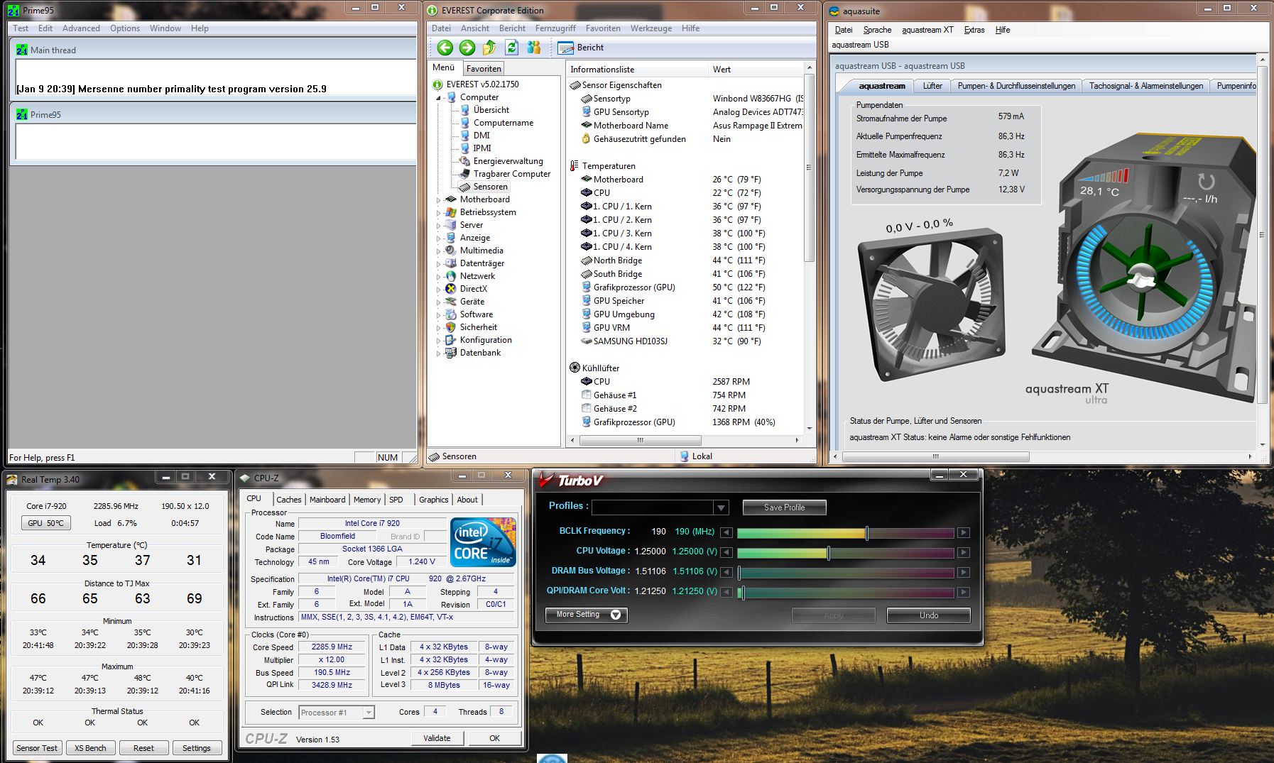 Das gekühlte Sys war ein Phenom II 940 @ 3,6GHz, 1,4V + GTX 260 OC.