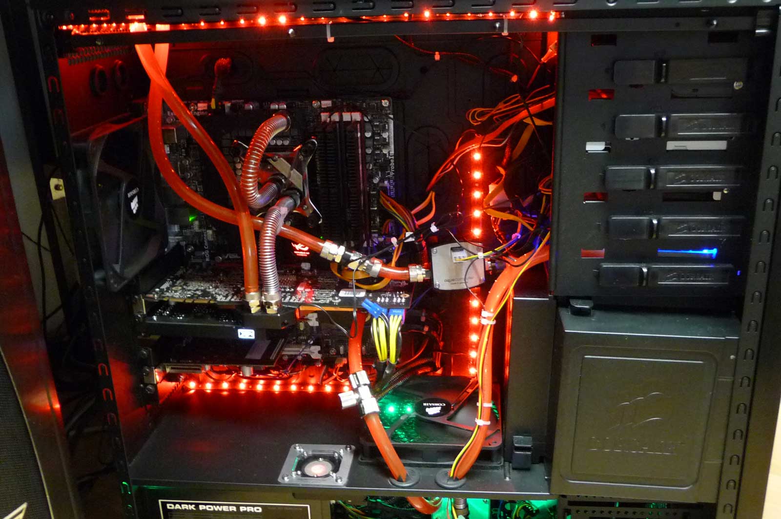 Kannst ja evtl die LED Streifen an das Seitenteil pappen oder so im Gehäuse befestigen, das sie nach innen strahlen. Wäre auch alles richtig rot, würde aber nicht so in den Augen brennen.