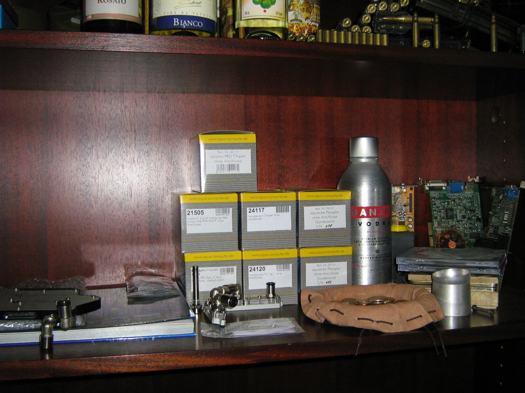 Hab zu Hause aus den Wakü anfängen auch noch CPU GPU und NB Kühler aus Alu als Bohrkühler liegen und für die spätere Ausbaustufe HDD Kühler auch gebohrt und nen selber gefrästen CPU Kühler.