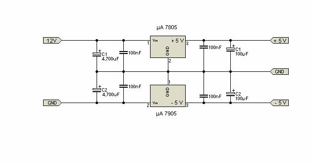 naja, man könnte den max232 oder so nebst seinen Kapazitäten auch nur für diesen Zweck einlöten - ohne irgendwelche zu wandelnden Signale. Quasi als (schwach(!) belastbare) symmetrische Spannungsquelle eben. AFAIR hat der dann je nach Last so um die 8-10 V (+/-).