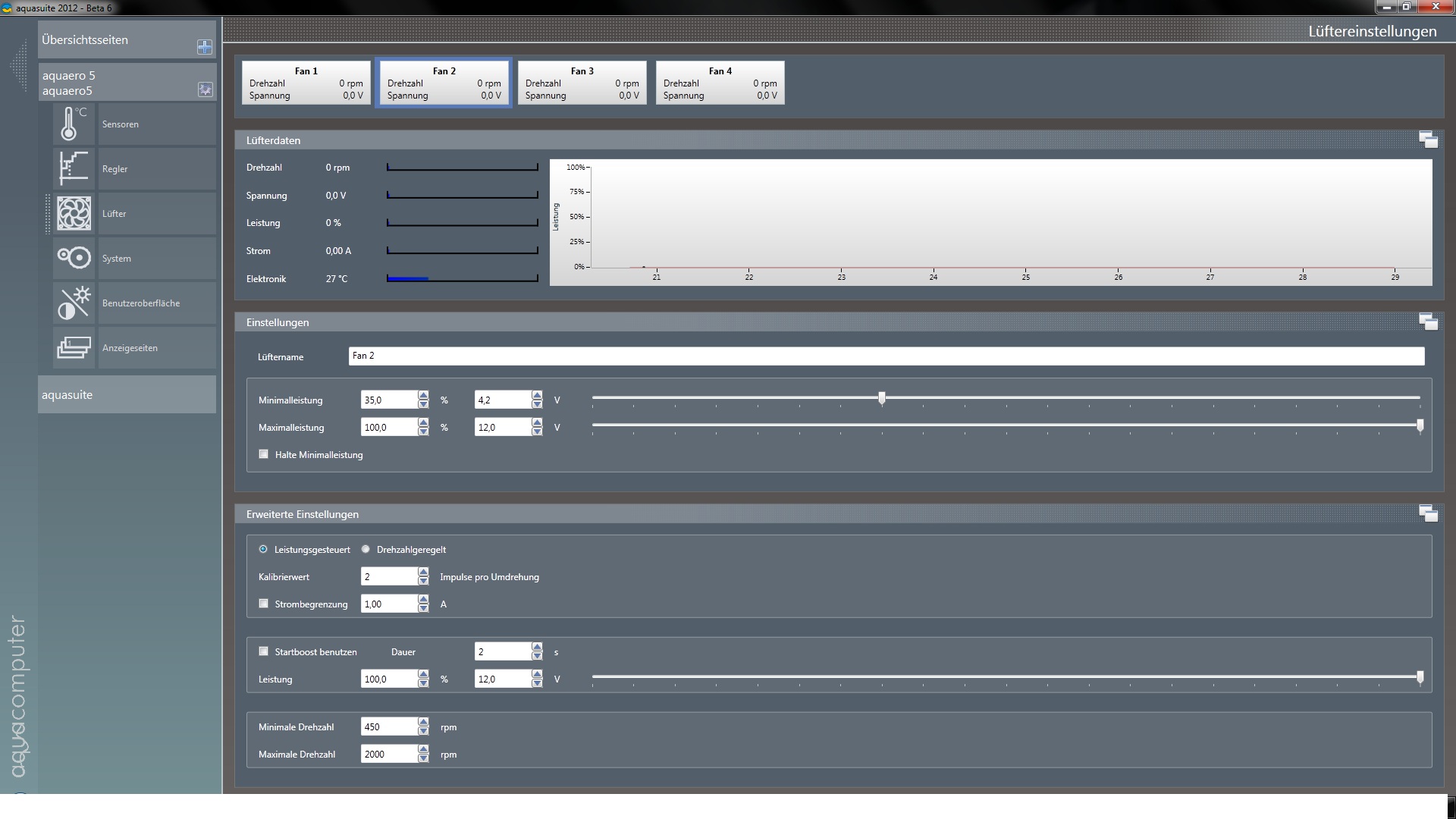 Als das aquaero kam, habe ich es angeschlossen um ein paar Tests durchzuführen; ging auch alles ohne Probleme.