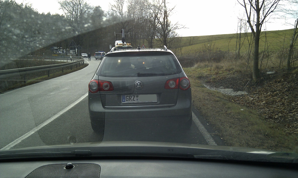 Ich hatte mal ein paar Fotos gemacht, als wir wegen dem Abschleppdienst warten mussten - irgend so ein Idiot kam warscheinlich von links oben und ist dann rechts im Graben gelandet. Auf dem dritten Bild wird das Auto gerade aufgeladen... ;)