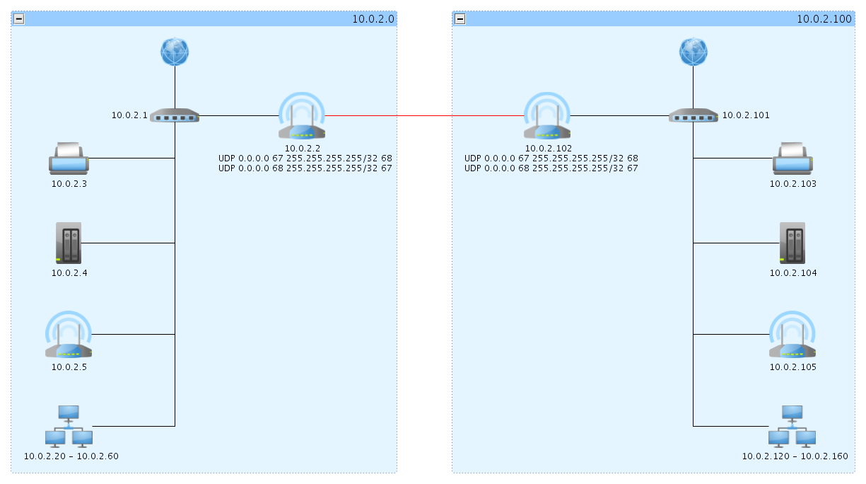 Wäre aber denkbar allen Geräten das Gateway manuell aufzudrücken und in beiden NWs den DHCP zu erhalten....