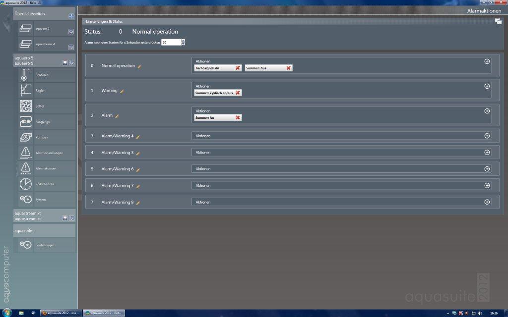 ich habe die aktuelle Version Beta 15 mit aquaero 5 1025; auf der Seite "Alarmeinstellungen" habe ich Temperaturalarme mit "Temperatur überschreitet Grenzwert" ausgewählt; wo kann ich jedoch die Grenzwerte einstellen?? Rechts davon wird zwar der Text "Warngrenze" und "Alarmgrenze" angezeigt, ich habe jedoch nirgends ein Feld zum Einstellen gefunden.