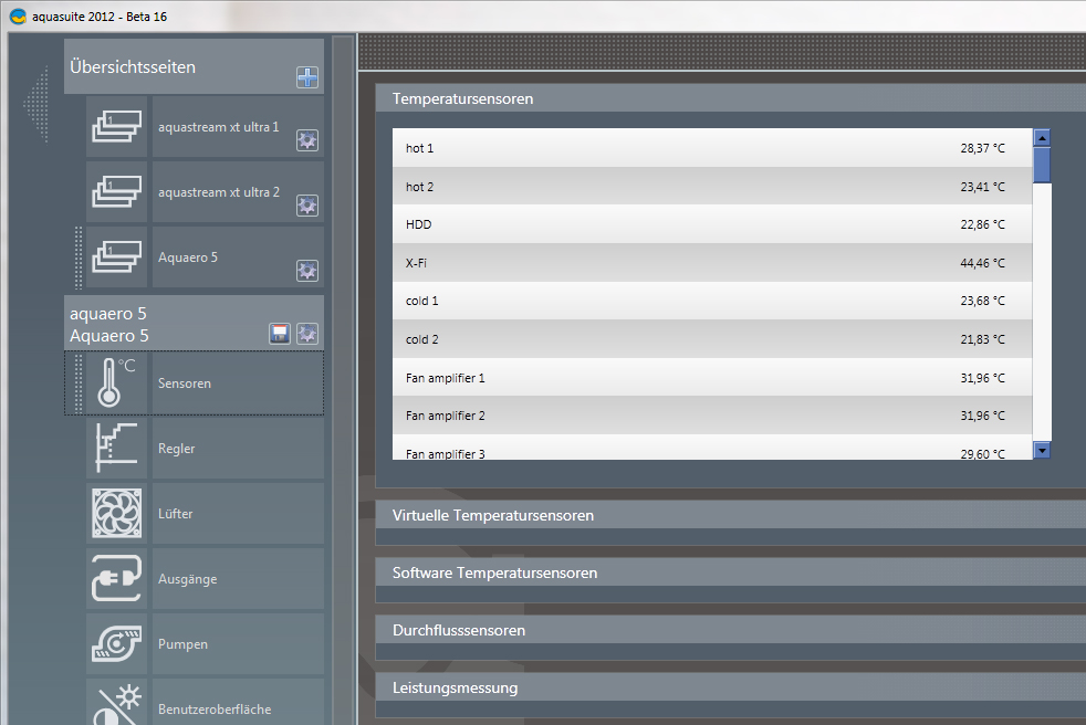 1. Irgendwie vermisse ich meine Aquastream Sensoren auf den Anzeigeseiten, wo sind die geblieben? Die Sensorübersicht 5-8 zeigt jedenfalls leere Felder an, in der Sensorübersicht über die Aquasuite werden die aber aufgeführt. Anfangs waren die ja mal auf den Plätzen 11 und 12, aber die gibts ja bei den Anzeigeseiten garnicht mehr!?