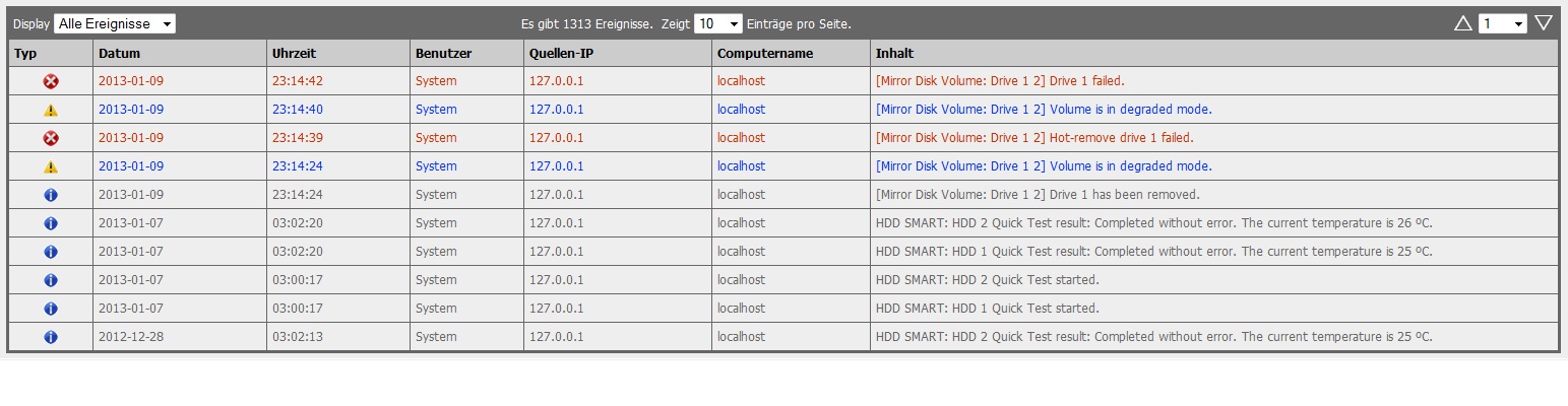 Die WD30EURS werde ich wohl zurück schicken. Dann lieber die 135,00 € für ein ganz neues NAS mit ganz neuen Festplatten sparen...