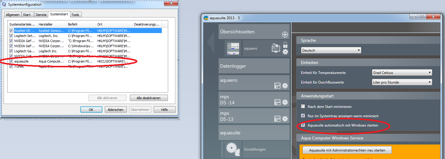 ist Aquasuite auf Autostart gesetzt.