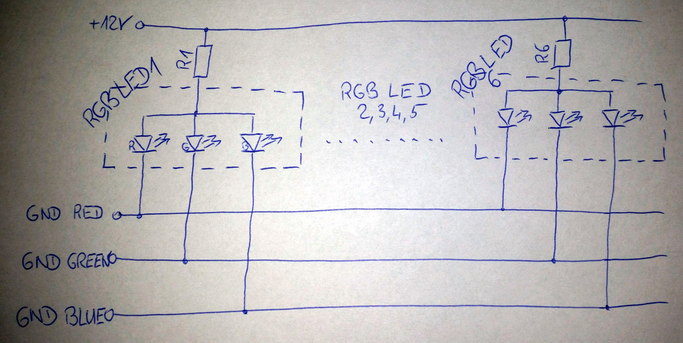 vielen Dank für den Hinweis. Habe den Schaltplan verbessert, die zu den RGB LEDs passenden Werte für die Widerstände ausgerechnet und durch handeslüblich Werte ersetzt. Würde das jetzt so funktionieren?