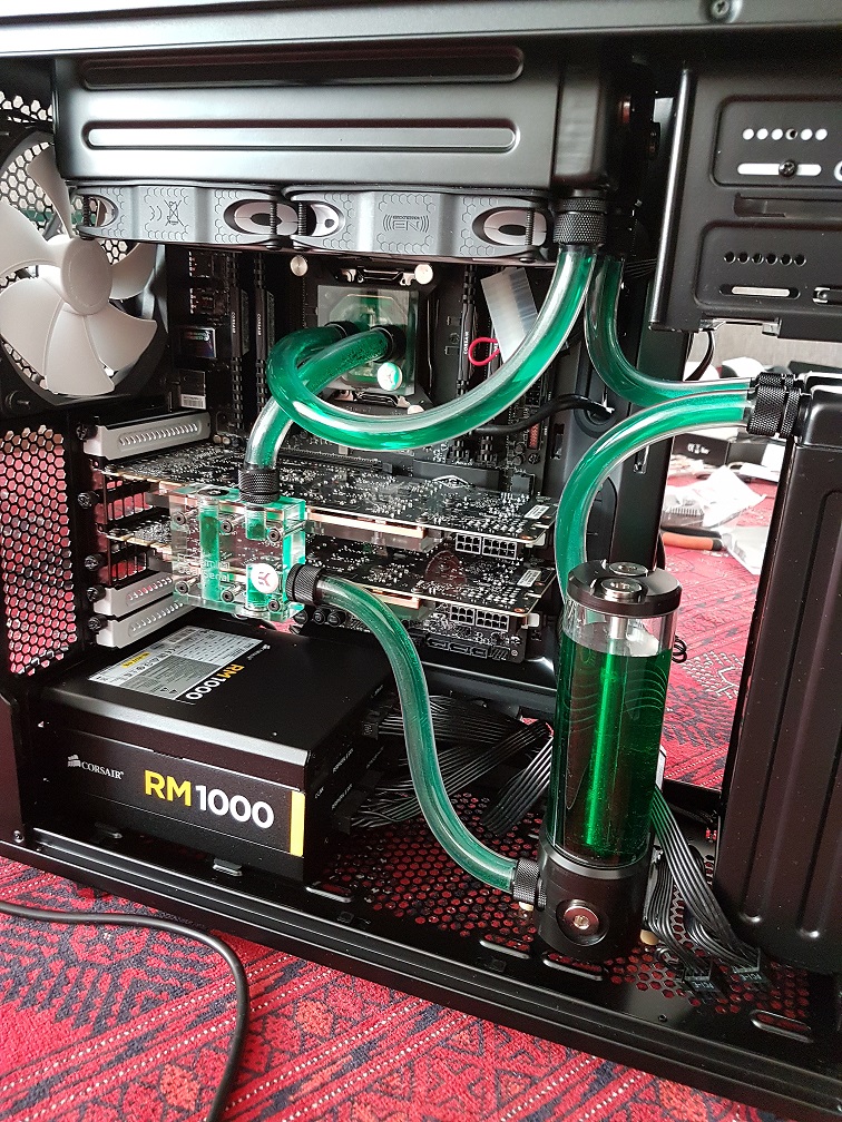 I have 2 coolgate g2 65mm rads, 2 GPU blocks from EK and waterblock is also from EK
