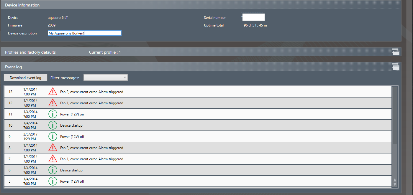 So fan channel's 1 and 2 have decided to not to work. Channel 1 was powering 3 fans and only pulling .73A, and i checked that with a multimeter before putting them on the channel. Channel 2 was only powering one fan at .29A. Im not sure what happened. Ive now got nothing plugged in and cant get the over current error to clear. All the fans work on the motherboard headers in the same config as I ran them on the aquero. Is there something i need to do to reset them? Are they blown?
