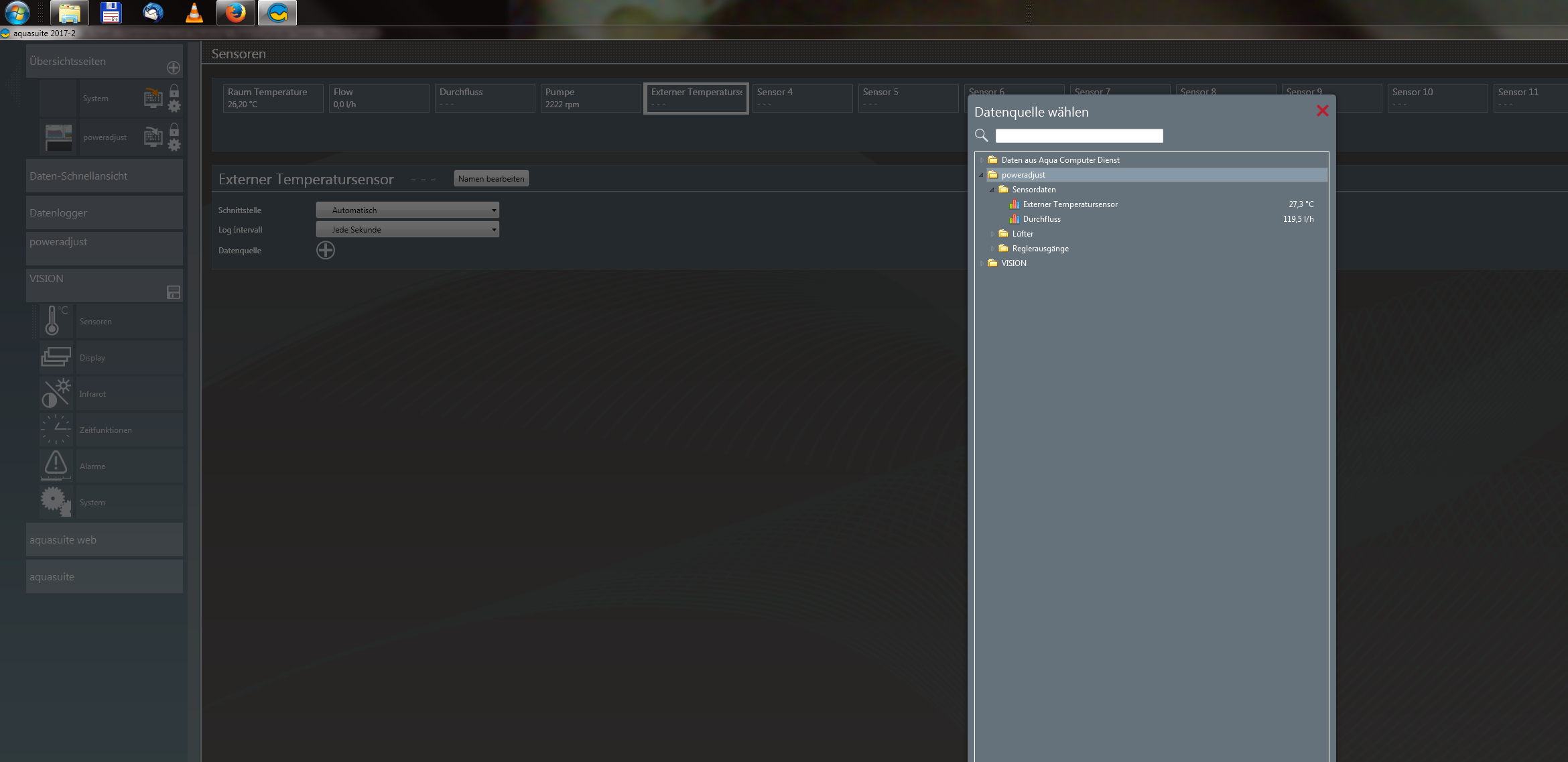 Keine Veränderung in den Datenquellen steht Poweradjust mit allen Werten (Temperatur , Durchfluss ;Endstufentemperatur etc) und wenn ich eines davon auswähle