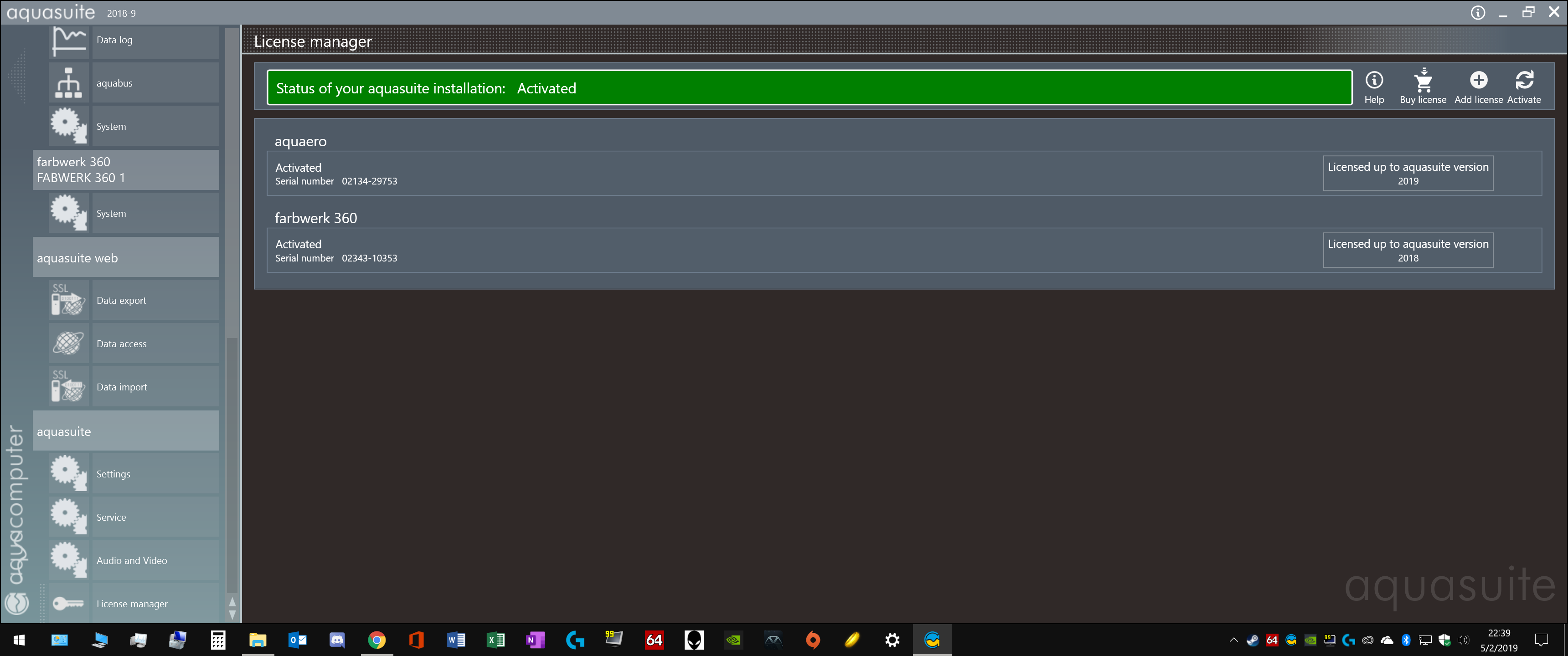 I just installed Farbwerk 360 the leds work, I can see the Farbwerk 360 tab in Aquasuite. I have paid for 2019 licence prior to installing Farbwerk 360. It says I need to update Aquasuite?
