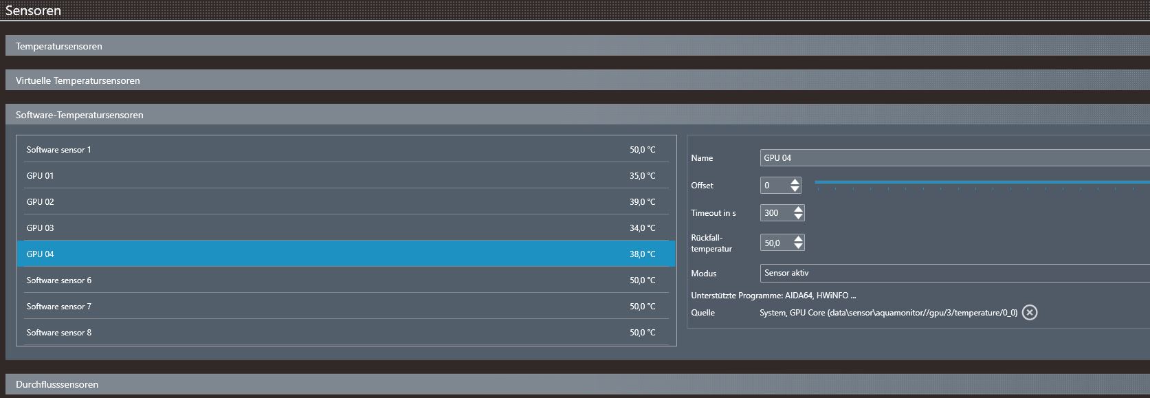 Für die Übersichtsseite der aquasuite verwende ich den Wert aus dem "Aqua Computer Hardware Monitor" und für den Kurvenregler den über die Software Sensoren definierten Wert.
