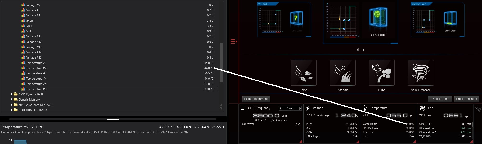 Des Weiteren werden komische Werte ausgelesen. Habt Ihr ein Mapping vom ASUS X570-F Gaming? Die meisten Werte verändern sich gar nicht. In der AI-Suite von ASUS stehen ganz andere Werte (in Echtzeit). Diese stimmen so ziemlich mit dem überein, was in HWiNFO ausgelesen wird.