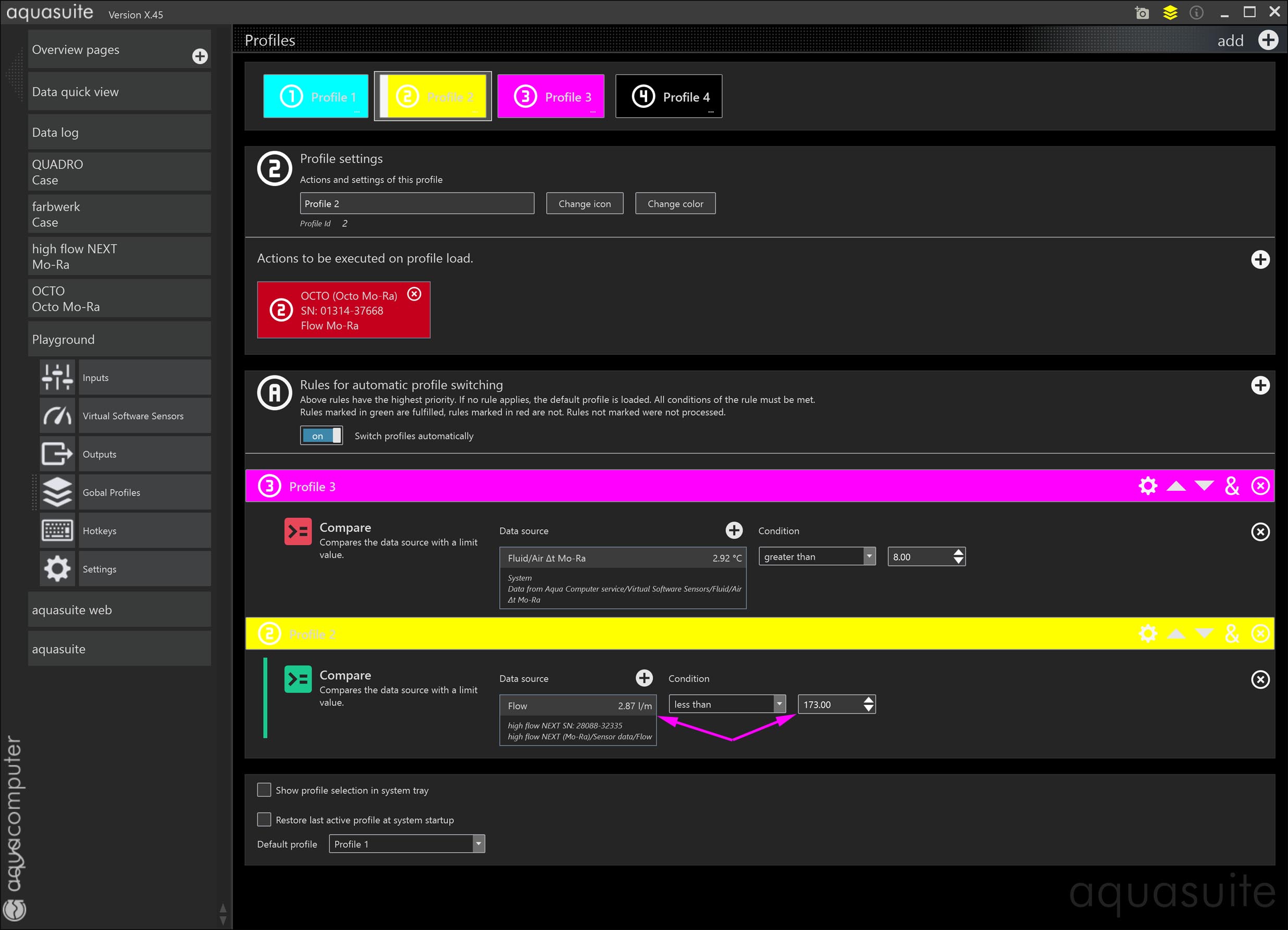 Thus, the aquasuite has probably the most powerful profile management on the market. If you are looking for even more possibilities, you can still control the profiles with complex queries in the ouputs section of the Playground.