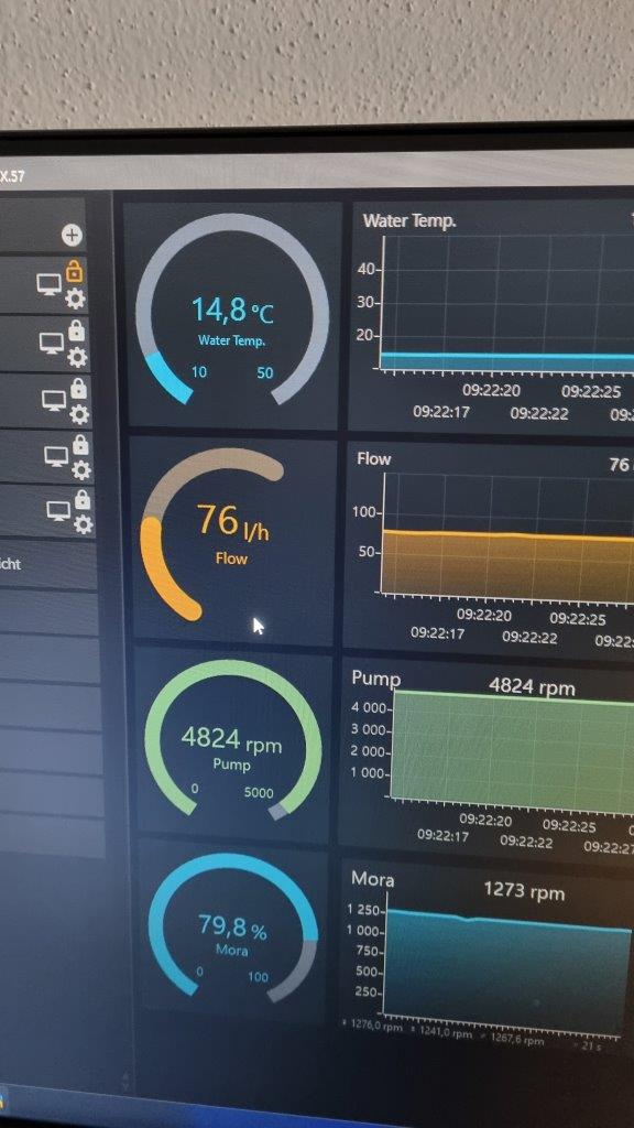 Alles über 15 Grad keine Anzeige, ok also erreicht die Pumpe mit einen Mora 420 Cpu+GPU keine 80 Liter