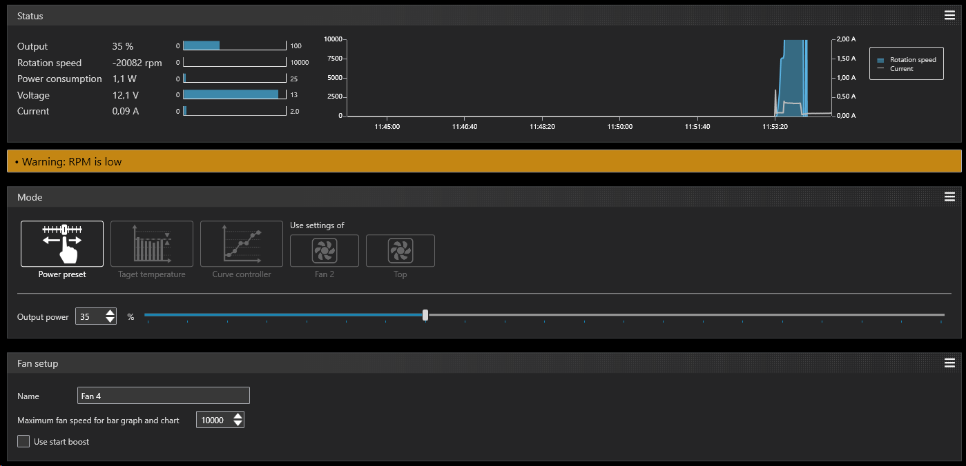 Ich habe diesen Serverlüfter jedenfalls erst eine Weile testen wollen ehe er in meinem Server landet, und ihn dafür an die Quadro geklemmt. Mit max 0.6A laut Specs kein Problem. Nun sehe ich da aber so was in der Aquasuite. Wenn ich wieder meine Noctua anklemme ist alles bestens, die Quadro ist also technisch in Ordnung.