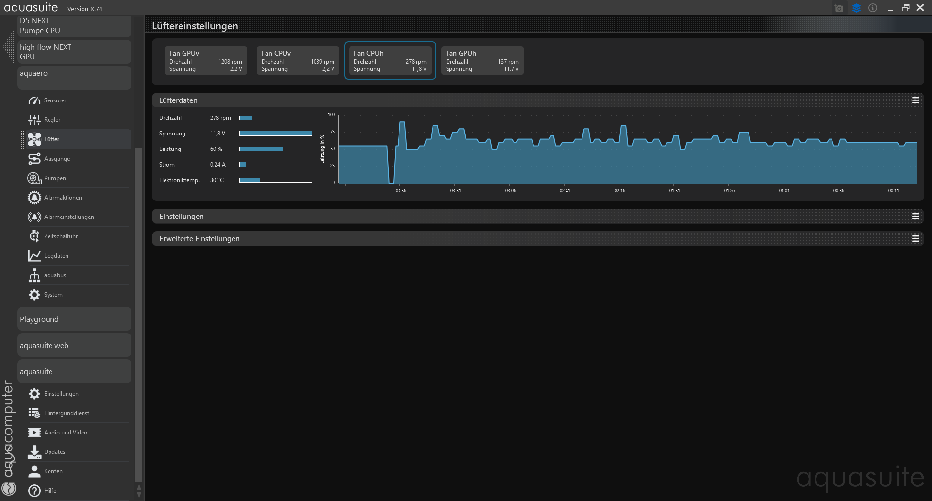 Am Screenshot, die ersten beiden sind Noctua Lüfter mit Noctua NA-FH1, 8 Kanal Lüfter Hub, habe diese auch schon entfernt, es ändert sich nichts. Aquabus ist auch aktiviert.