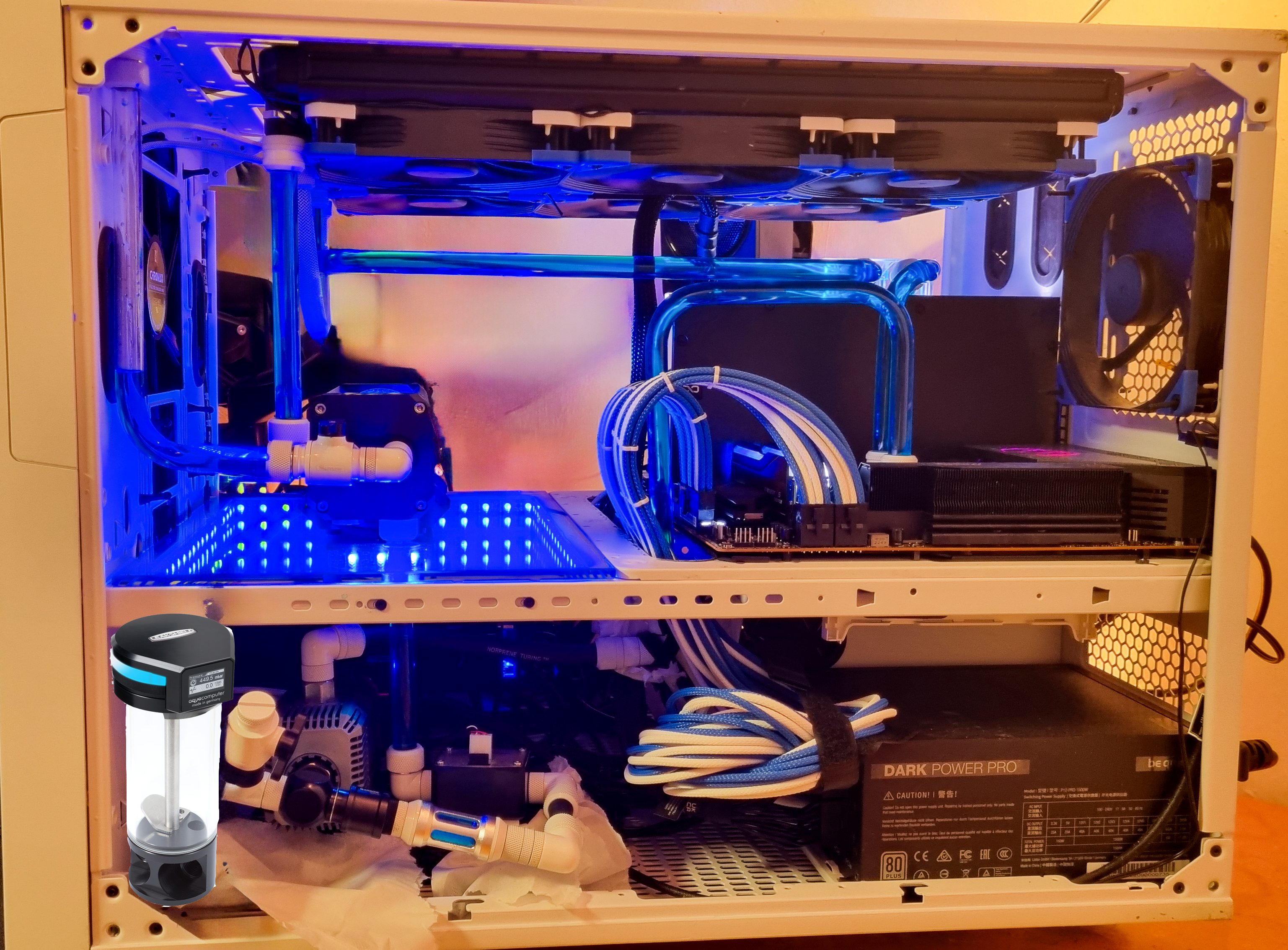 ich bin kürzlich über das Leakshield gestolpert und bin am überlegen, wo ich das in mein Case implementieren könnte. Aktuell liegt ein AGB über der Pumpe. Wenn ich jetzt einen zweiten AGB samt Leakshield links neben die Pumpe, unten im Case platziere (siehe Bild), wird dieser vermutlich u.U. volllaufen oder? Eine andere Möglichkeit wäre, den 2. AGB links oben am Case zu befestigen, da wo jetzt mein "Füllstutzen" lang geht. Wäre optisch nicht meine präferierte Wahl, aber machbar. Habt Ihr noch Ideen wie ich das Leakshield implementieren könnte? Z.B. Standalone irgendwie in das bestehende System einbinden oder irgedneinen flachen/dünnen AGB den ich zwischen Frontblende und Case "quetschen" kann?