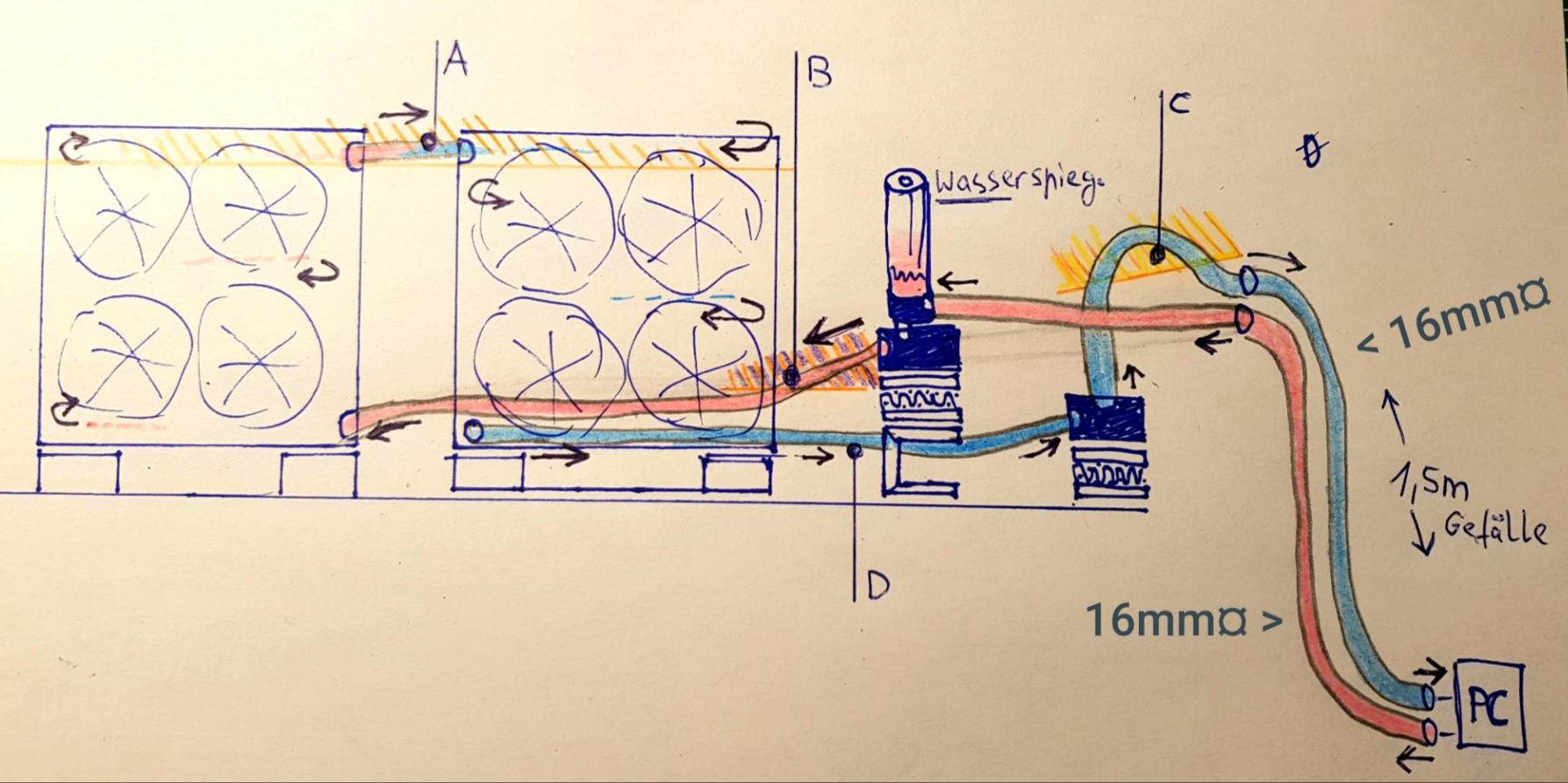 Bilder sende ich nach.Genauso würde mich dein Aufbau der externen Radiatoren interessieren. So, wie ich mir das Vorstelle, stehen die Radiatoren auf einem Schrank und der PC daneben auf dem Boden....